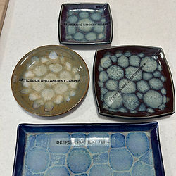 Learn this unique glazing technique popularized by artist Kathy McGuire. Choose the size/shape of stoneware pottery that is ready to glaze. Rectangular Tray 8X6" $45 Oval Platter 10x7" $50 9 inch Dinner Plate $35 5 inch Plate $20 This glazing technique takes some time 60-90 min, but results are so worth it. Then your piece is fired before taking it home. This is a fun project, so invite a friend to join you.